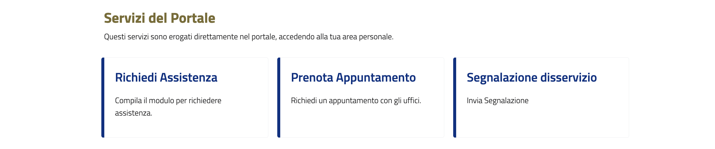 Servizi del Portale: è possibile richiedere assistenza, prenotare un appuntamento o inviare una segnalazione.