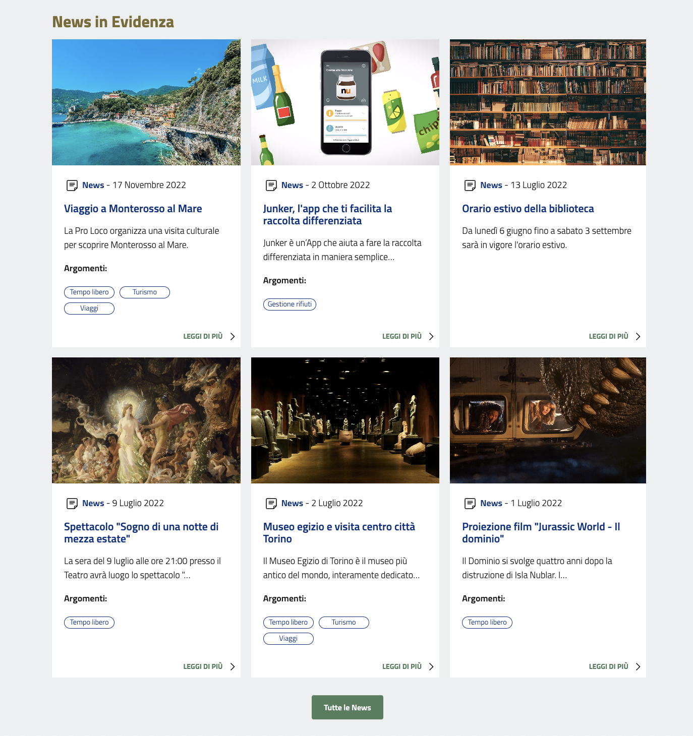 E' comunque sempre possibile accedere a tutto lo storico delle news pubblicate cliccando sul tasto "Tutte le News".