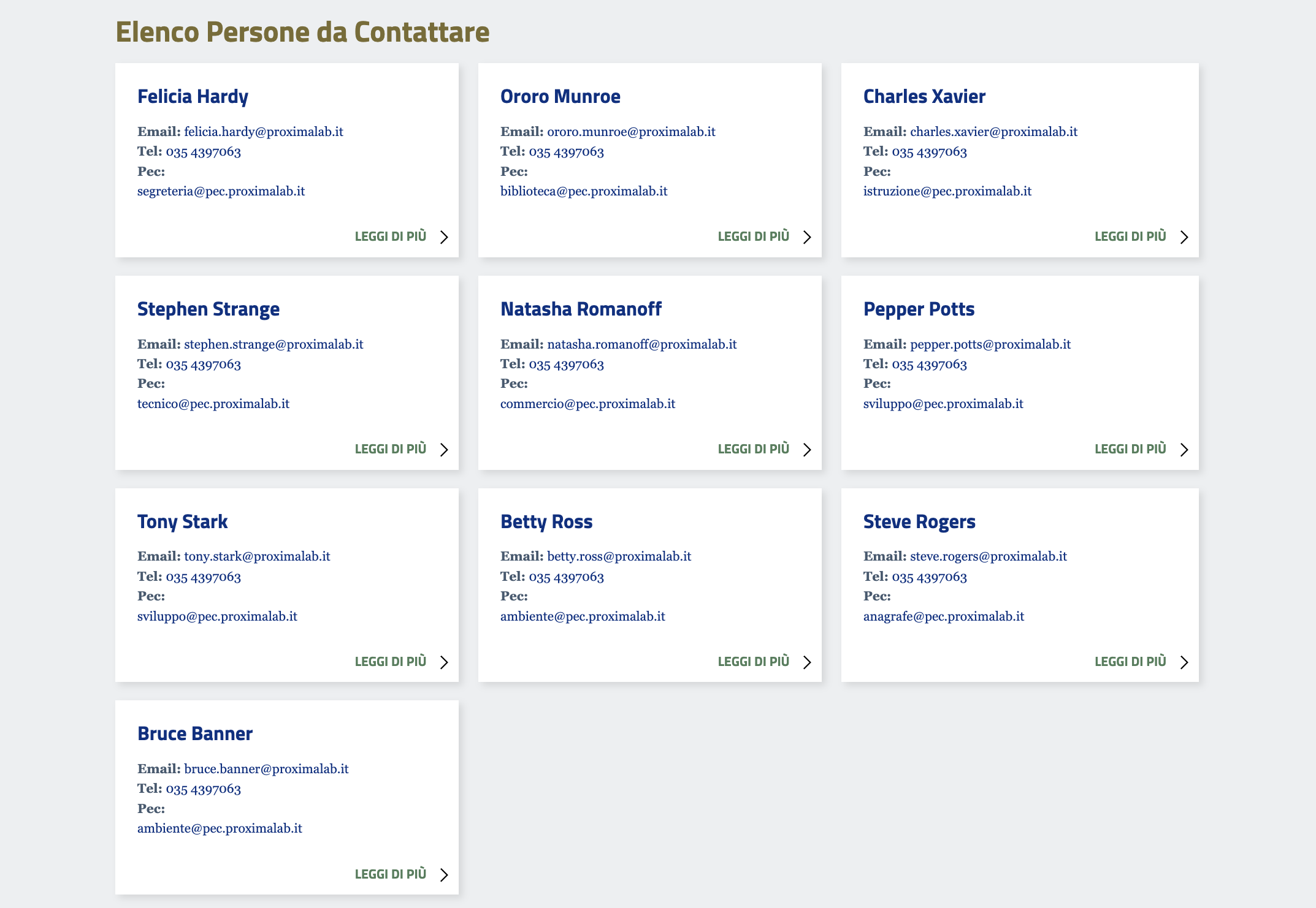 IntroduzioneCom'è fatto il sito?Amministrazione Personale Amministrativo In questa sezione sono presenti tutti i Dipendenti Comunali, ordinati in ordine alfabetico.