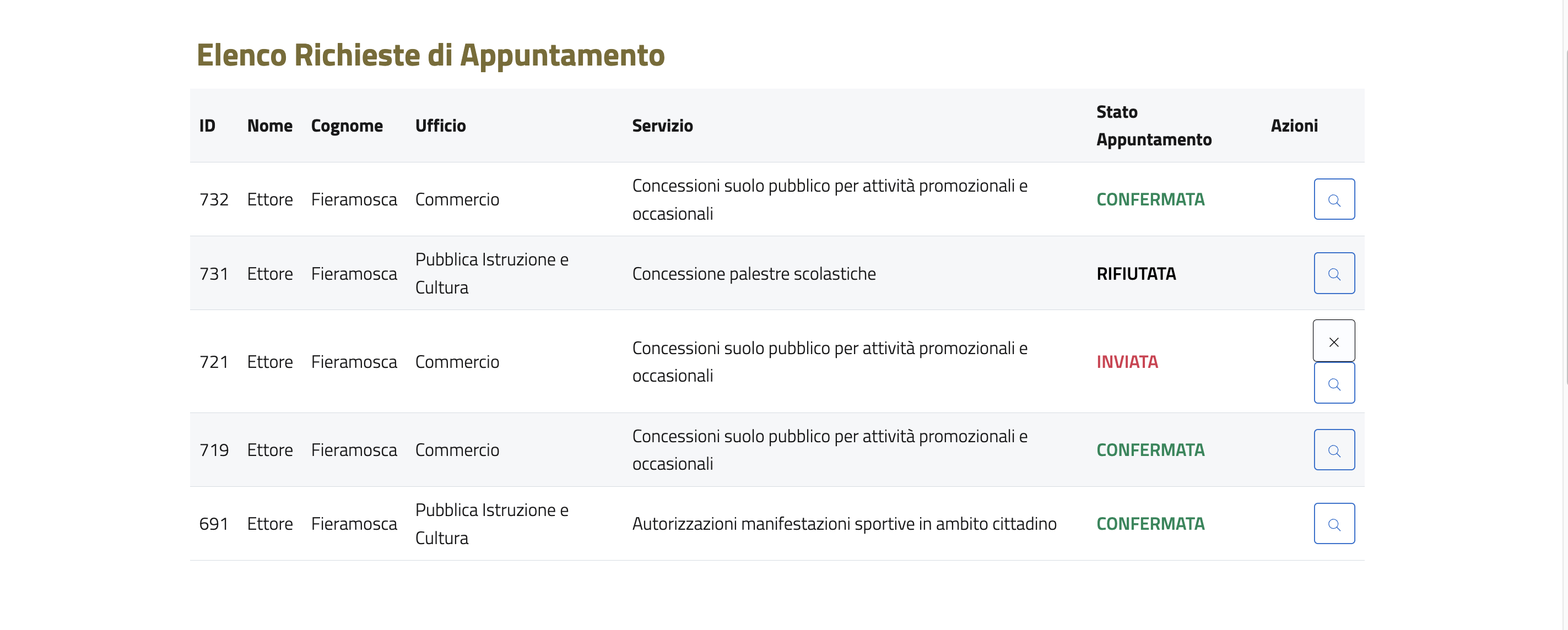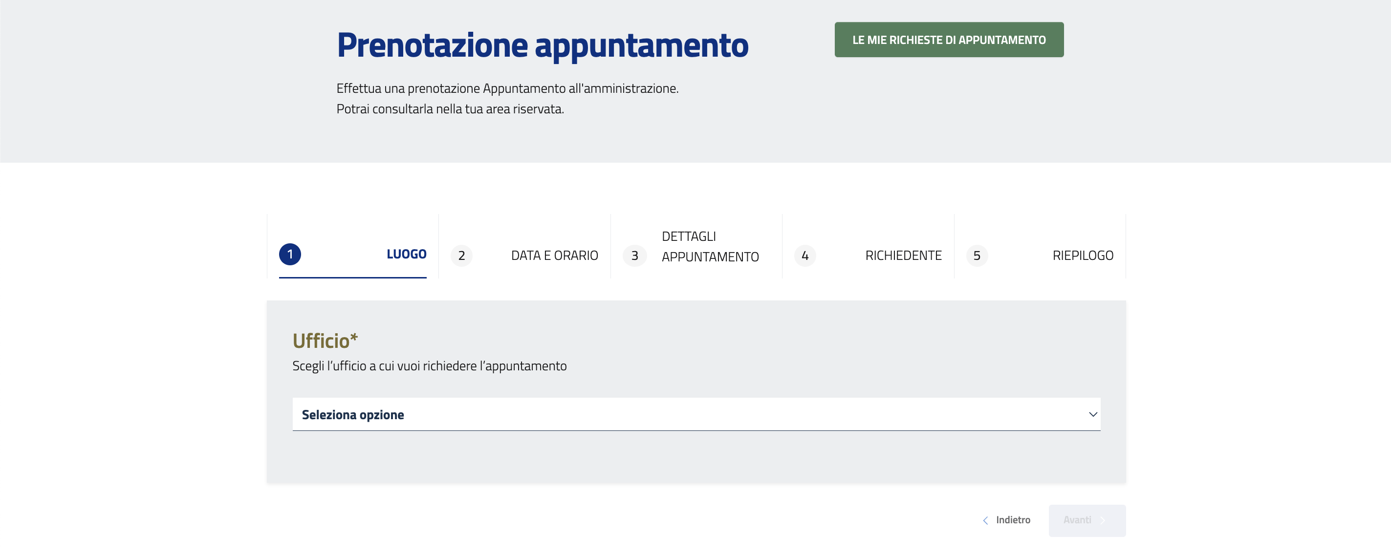 Per prenotare un appuntamento con un ufficio o con un amministratore, si deve cliccare su "Prenota un appuntamento".