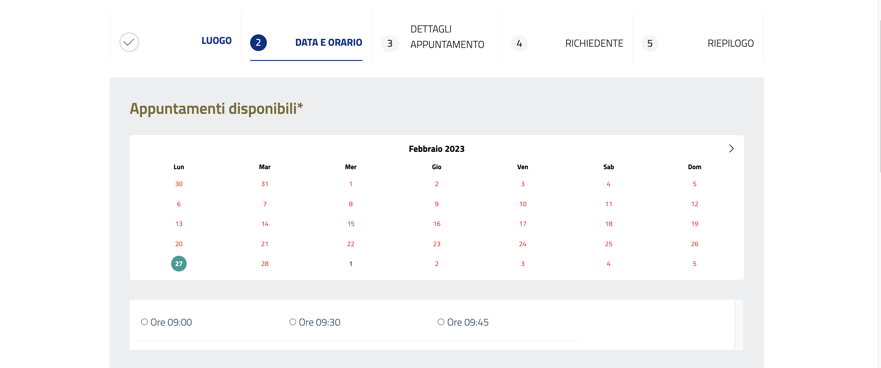 Dal calendario selezionare la data disponibile desiderata e cliccare Avanti.