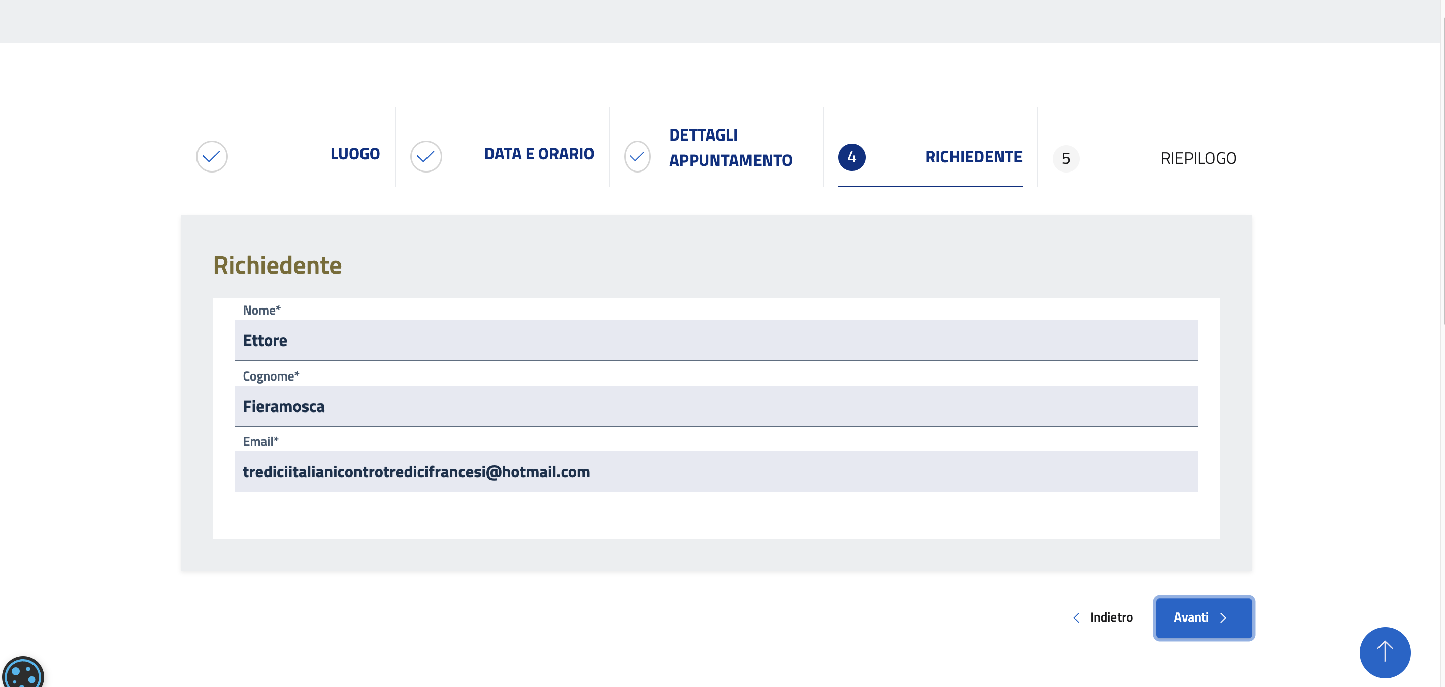 Controllare che i vostri dati siano corretti e cliccare Avanti.