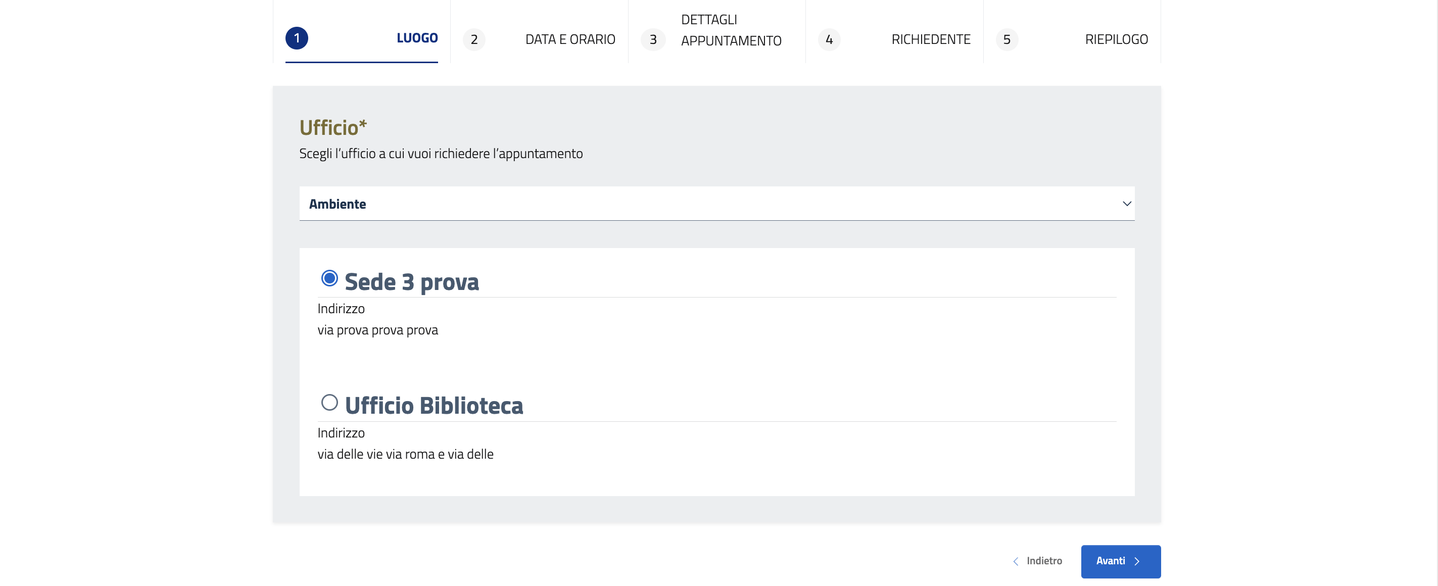 Selezionare la sede e cliccare su Avanti.