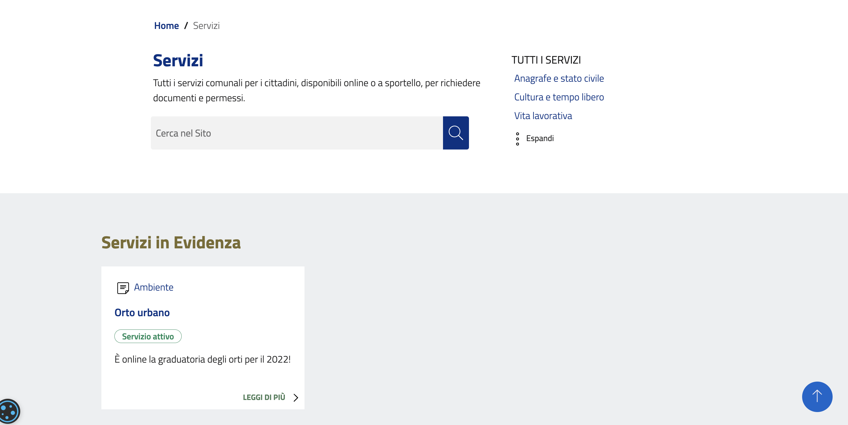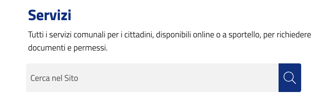 In qualsiasi caso è sempre possibile ricercare un servizio mediante il box "Cerca nel sito" posto in cima alla pagina.