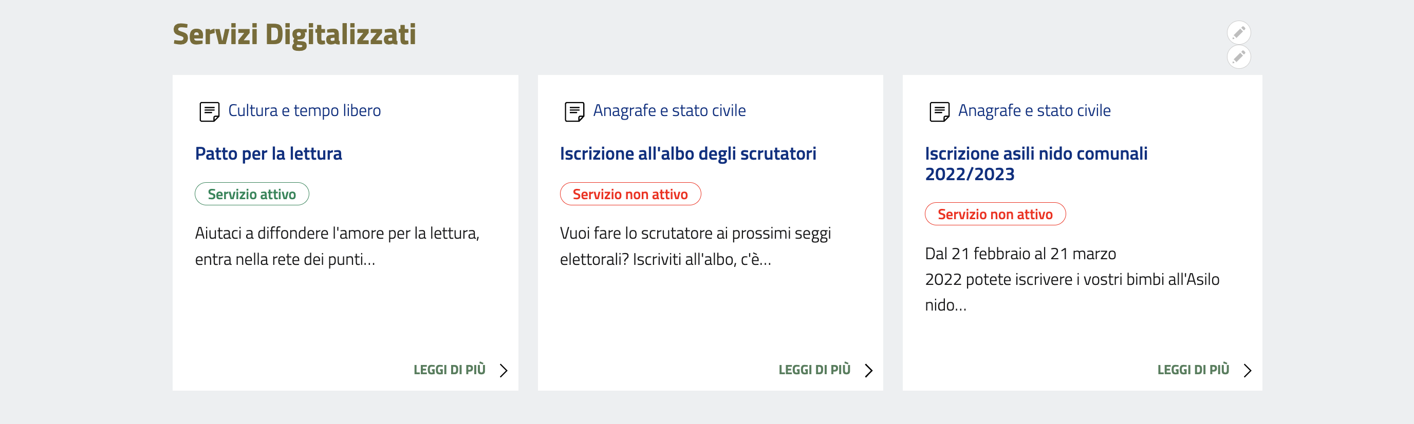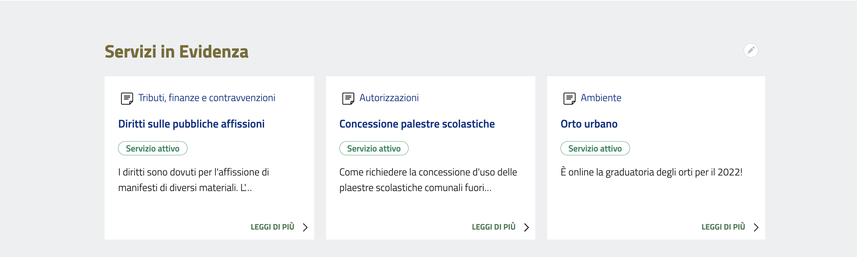 I Servizi in Evidenza, ovvero i servizi che godono di maggior accesso e interesse per la cittadinanza.